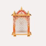 Golden Color Handpainted Wooden Pooja Mandir For Home