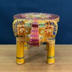 Rajasthani Royal Color Full Wooden Elephant Stool For Home Décor