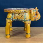 Rajasthani Traditional Indian Hand Painted Wooden Elephant Stool For Home Décor